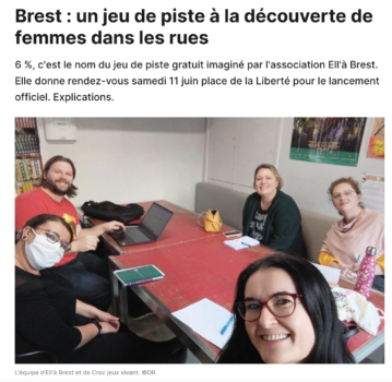 Le prochain événement d'Ell'à Brest aura lieu samedi 11 juin prochain, il s'appelle 6% et il est ouvert à toutes et tous !C'est un jeu de piste dans les rues de…